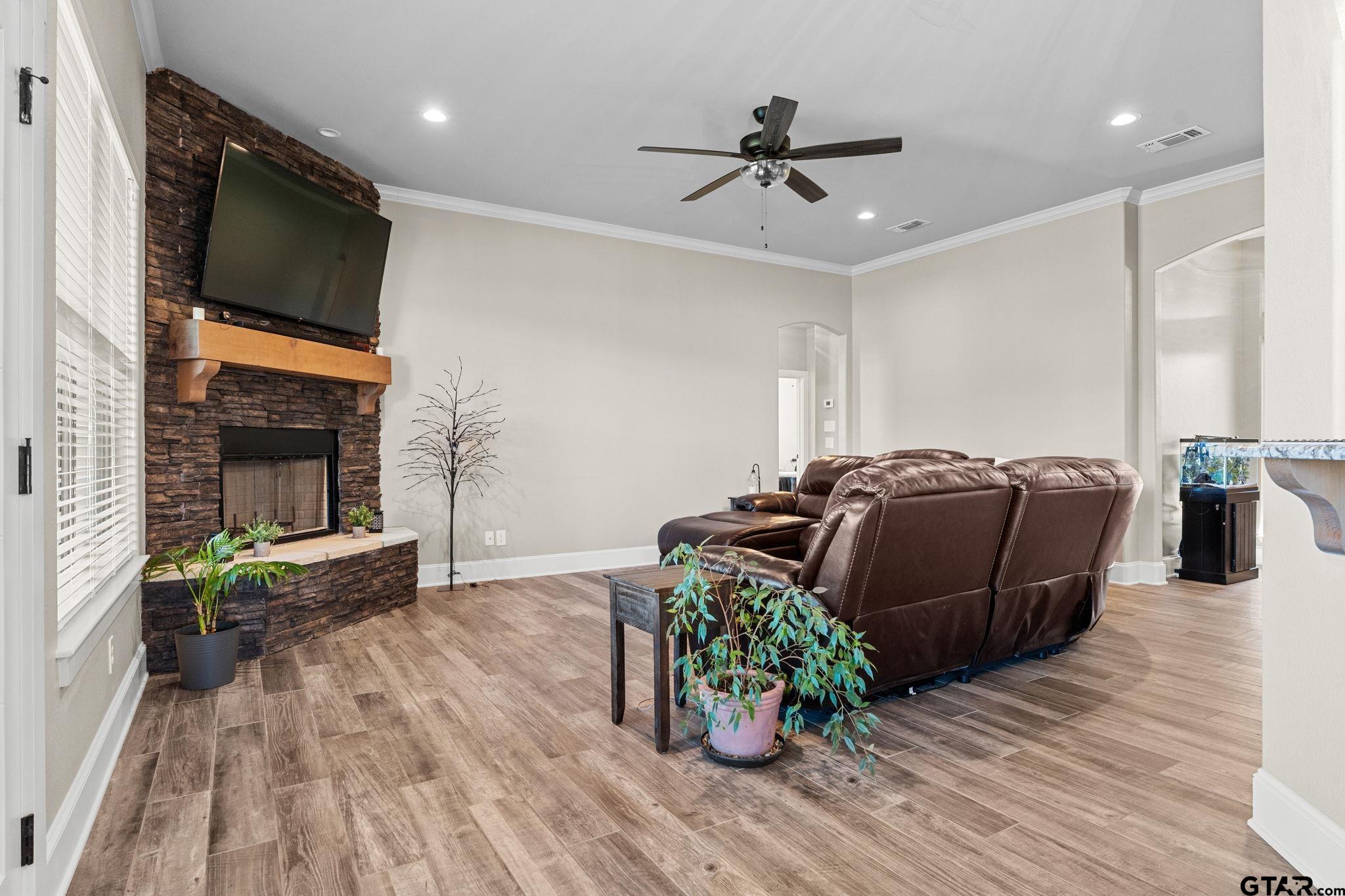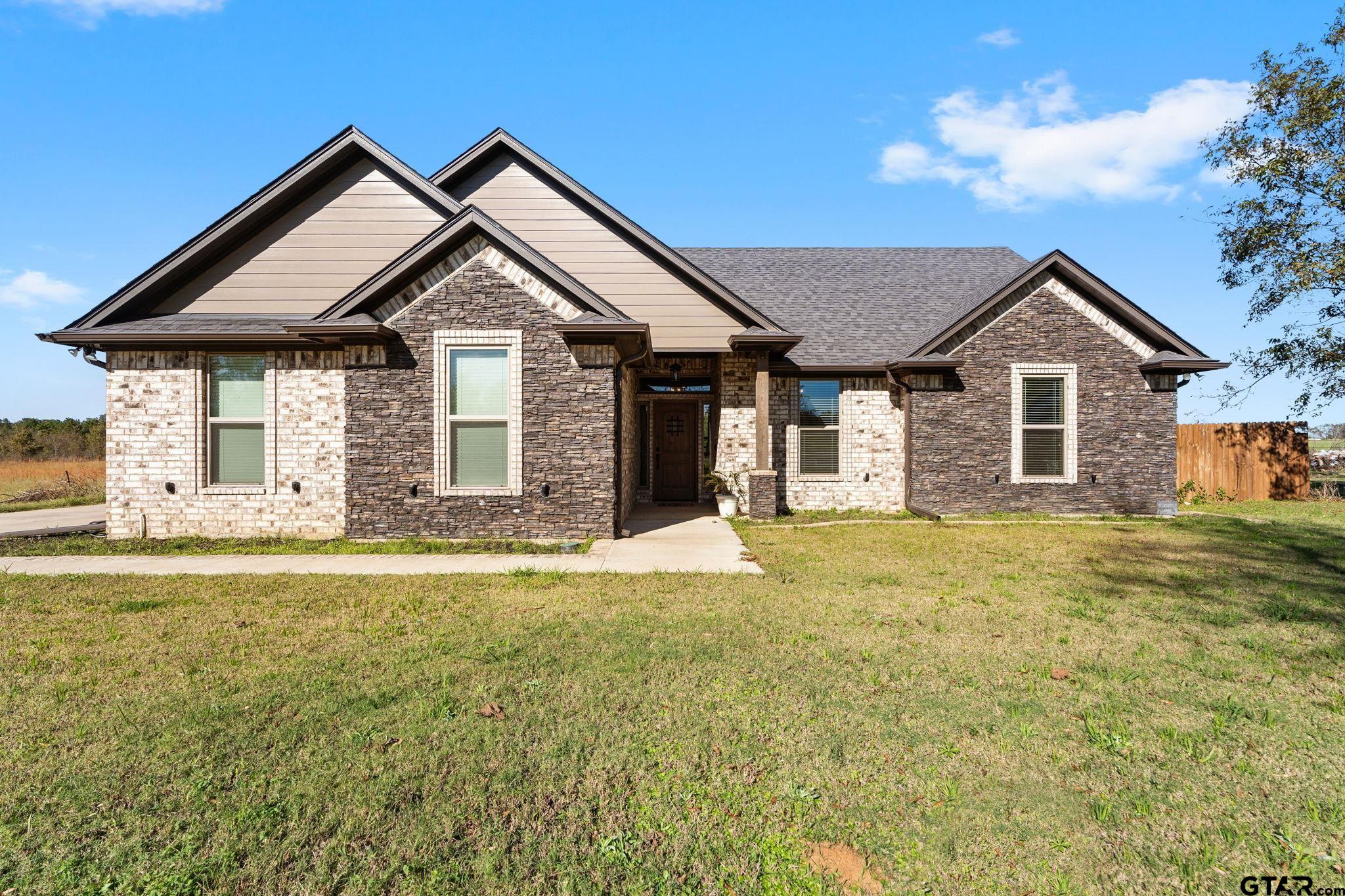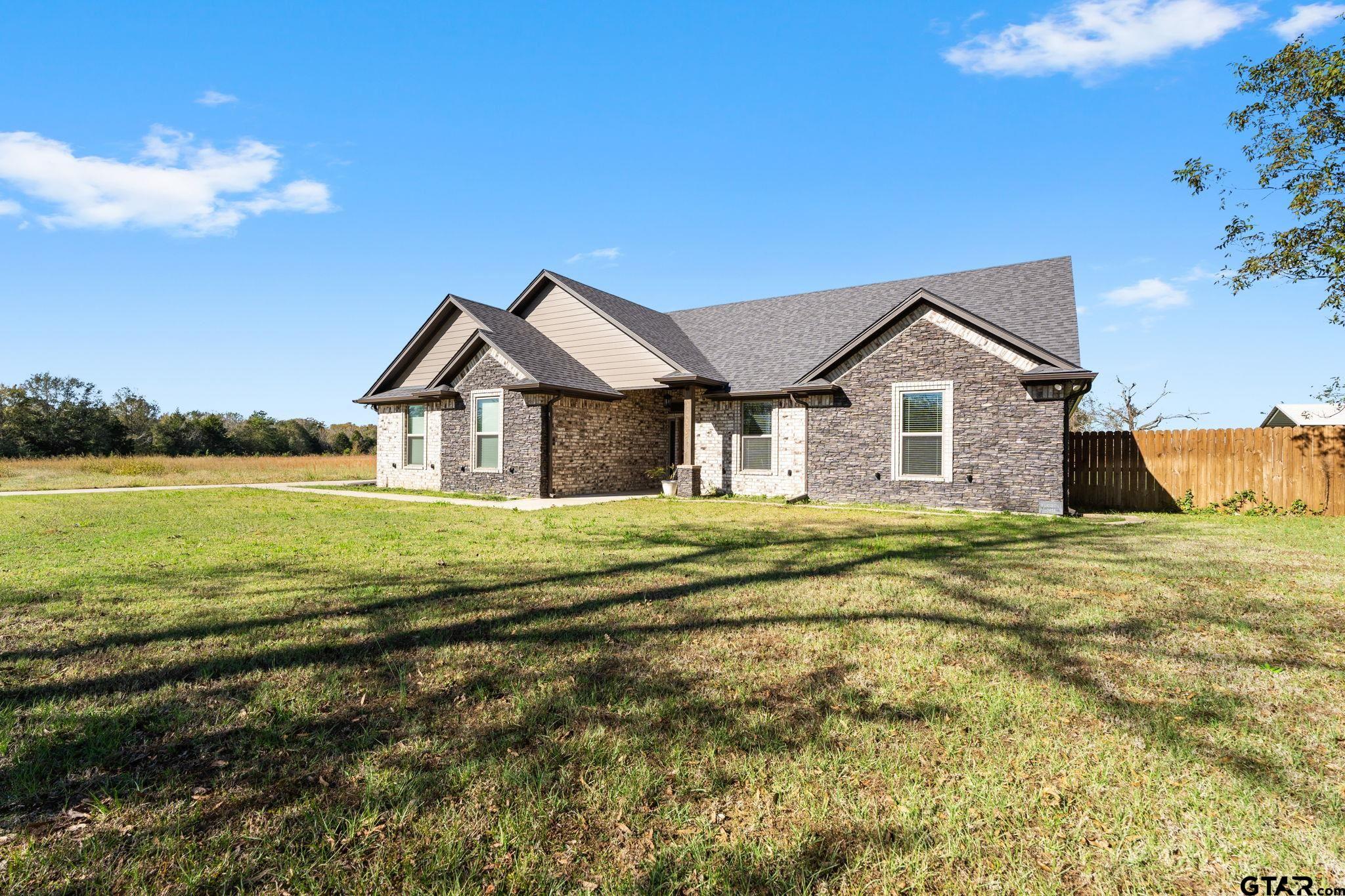 | Space to breathe and room to grow just outside the city limits in highly sought after Bullard ISD. This custom built 2021 home offers nearly one acre of land with no HOA, providing the privacy and freedom many buyers are searching for while still being only twenty minutes from shopping, dining, and medical facilities in Tyler. Designed for everyday living, the open concept layout welcomes you with a comfortable living area featuring a cozy corner fireplace and large windows that overlook the covered back patio and private backyard. Neutral colors, abundant natural light, and thoughtful flow make this home feel inviting and move in ready. The kitchen is both functional and inviting with a gas range, extensive custom cabinetry, generous storage, and a dedicated coffee nook that adds charm and convenience. It is a space well suited for busy mornings, casual meals, and gathering with family and friends. The primary suite is privately located and features tray ceilings along with an ensuite bath offering dual sinks, a garden tub, and a separate shower, creating a relaxing retreat. Two additional bedrooms and a second full bath provide flexibility for family, guests, or home office needs. Outside, the approximately .975 acre lot is fully privacy fenced, offering space to garden, play, or simply enjoy the peaceful setting. Additional highlights include extra insulation, excellent storage throughout, a spacious laundry room, a two car garage, and an aerobic septic system. Well maintained and thoughtfully built, this home competes directly with new construction while offering land, privacy, and freedom that are increasingly hard to find. | |