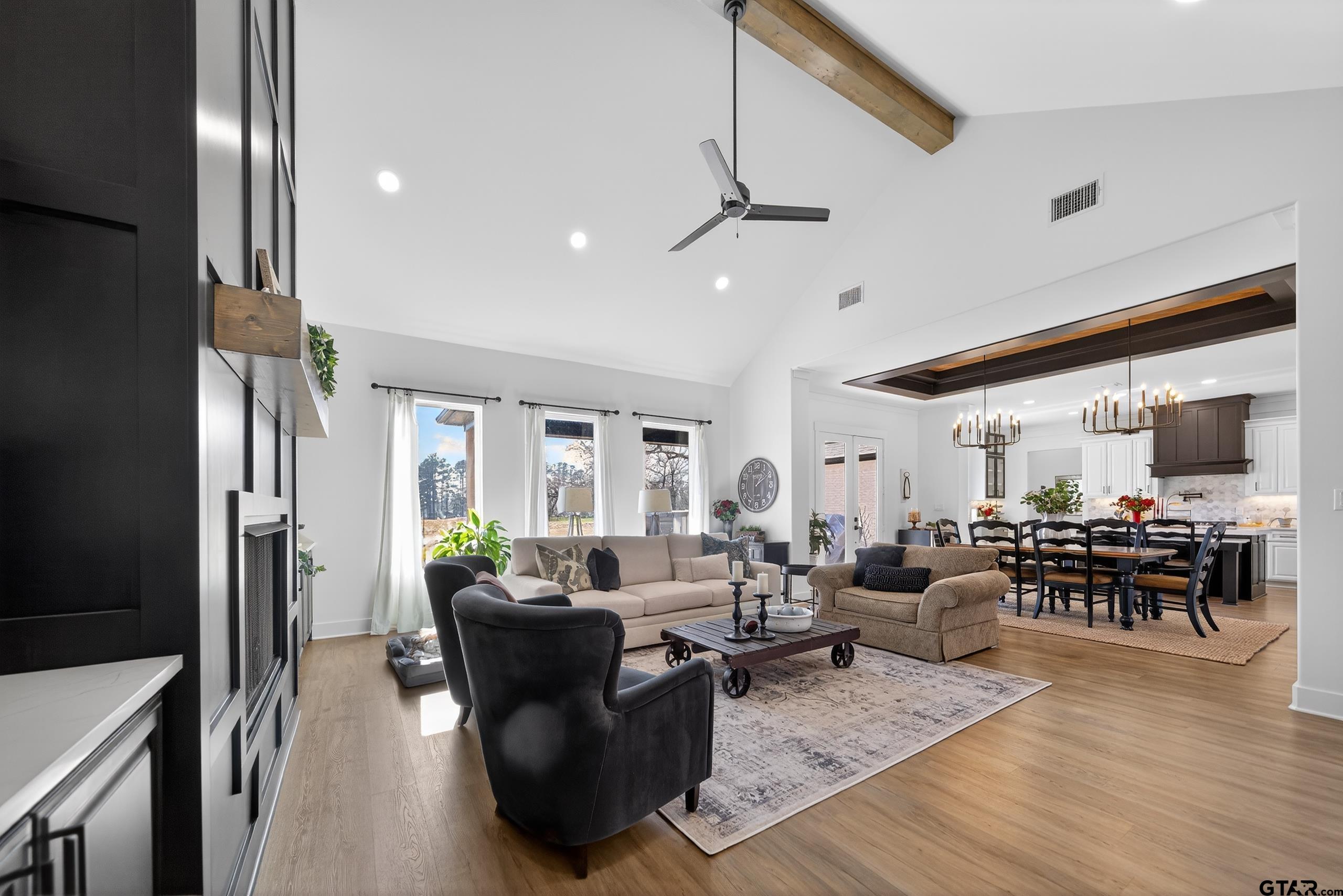 | This one-of-a-kind modern farmhouse harmoniously blends luxury and nature, boasting abundant natural light that bathes the interior, conveniently located just outside the gates of Eagles Bluff Country Club. As you step inside through the double doors, you’ll be amazed by the craftsmanship and how carefully everything is put together. With four bedrooms, two and a half bathrooms, and half an acre of land, there’s plenty of room for your growing family or for guests to stay. The elegant interior design makes this property feel welcoming and sophisticated. The open floor plan connects the living, dining, and kitchen areas, so it’s easy to move around and entertain with guests. The kitchen is a real chef’s dream, with top-of-the-line appliances, quartz countertops, a gas cooktop, and a huge butler’s pantry. Picture yourself cooking delicious meals for your family in this stylish and practical space. You can also relax in the spacious master suite, which has a luxurious ensuite bathroom where you can unwind after a long day. The other bedrooms are cozy and private, resembling a small retreat. The expansive backyard features a covered porch and an inviting pergola, ideal for outdoor activities and creating cherished memories with friends and family as we bask in the beauty of the sunset. | |