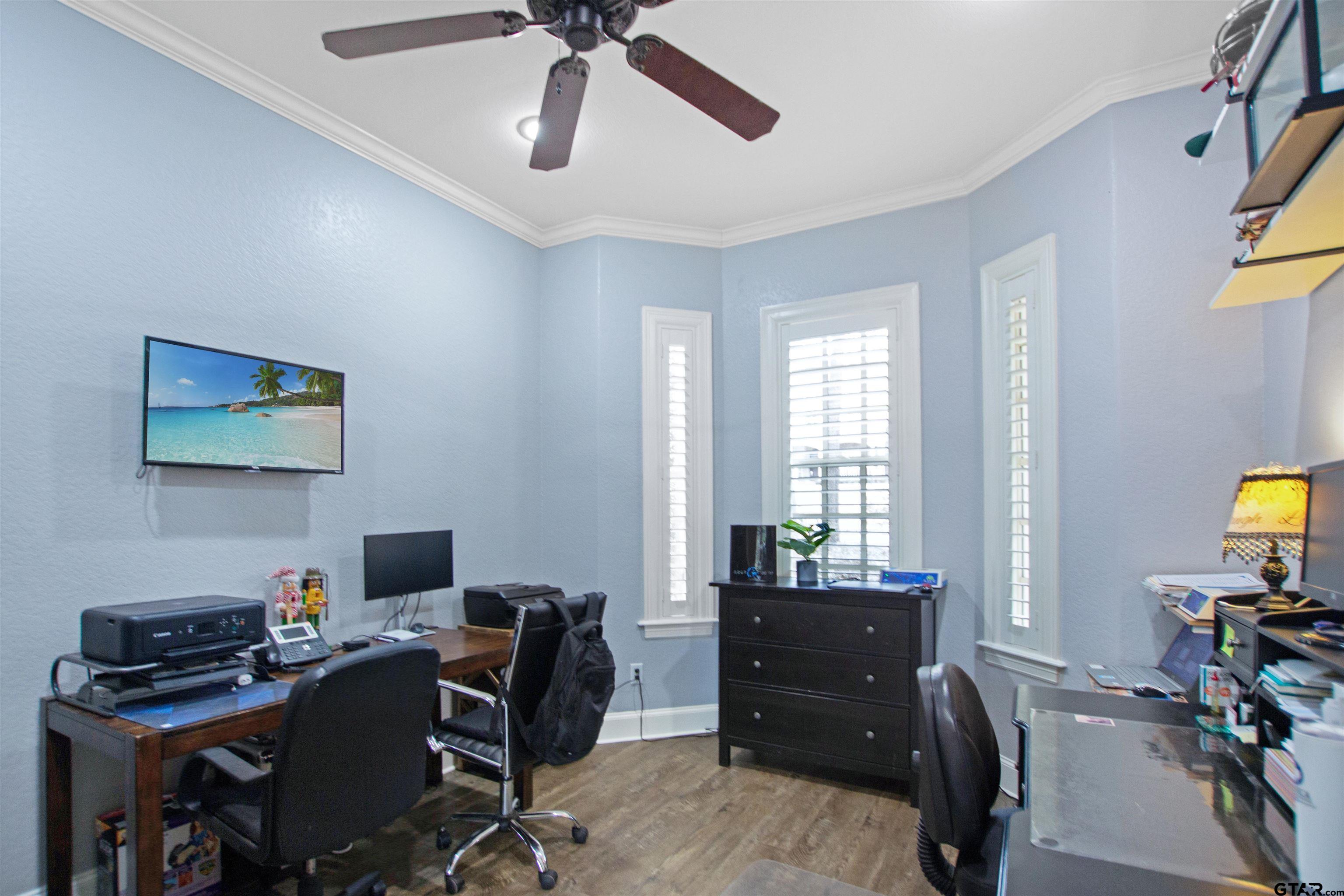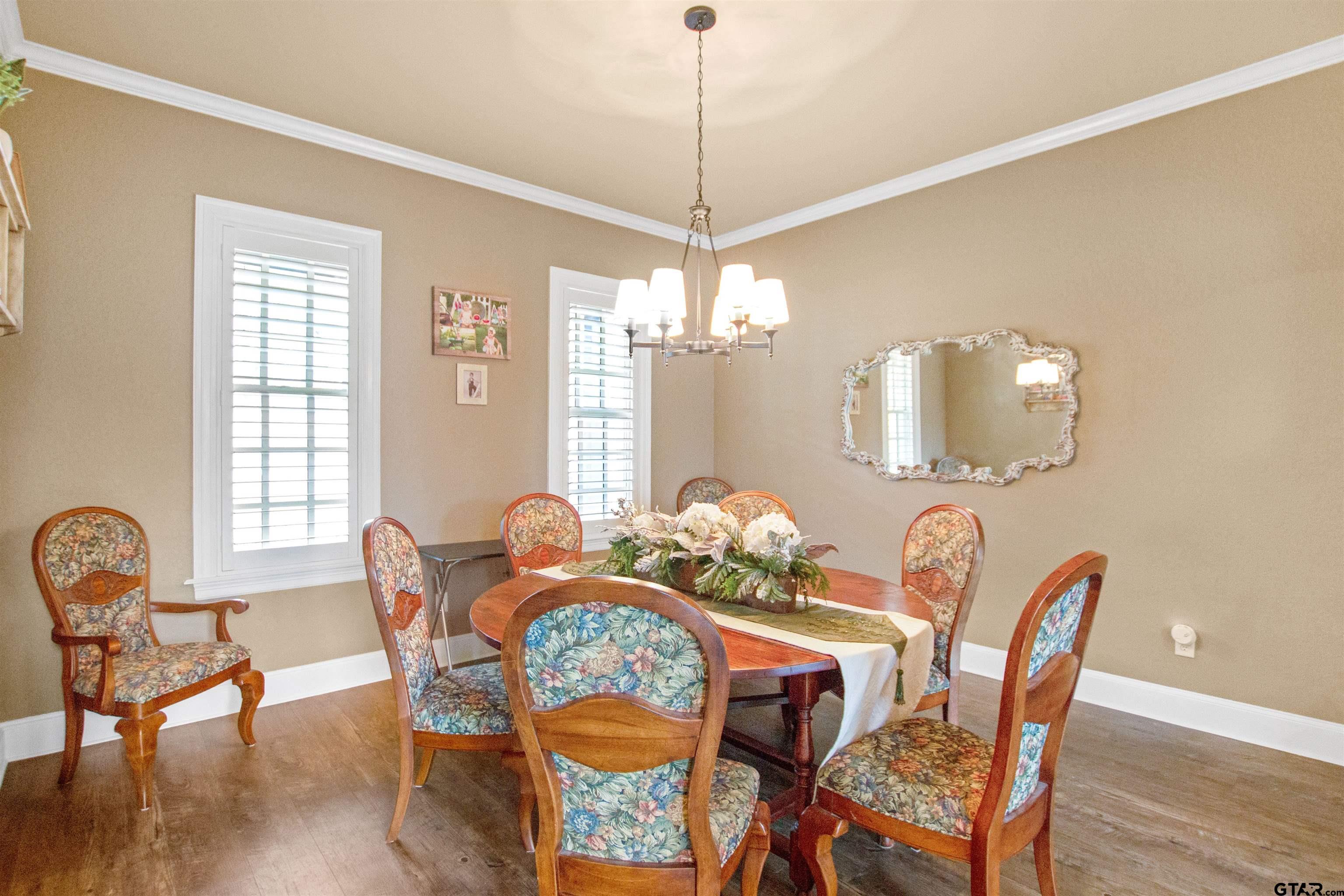 | Welcome to this beautiful 4-bedroom, 3 full bath, 1 half bath home with a 3-car garage, offering 3,224 square feet of well-designed living space in the highly sought-after Ridge at The Woods subdivision in Tyler. From the moment you arrive, you’ll notice the character, charm, and numerous upgrades that enhance both style and peace of mind. A large driveway provides plenty of room for extra vehicles and guests, while the grand entrance sets the tone inside. The living room is open and inviting, featuring floor-to-ceiling windows that fill the space with natural light. The breakfast nook and formal dining area both offer abundant light and beautiful fixtures. The kitchen features a clean, timeless design with generous cabinet and counter space, plus a spacious island perfect for gathering. The office is nicely sized and versatile. Each bedroom and bathroom is generously proportioned, with high ceilings that elevate the space. The primary suite is a true retreat, complete with beautiful windows, a large walk-in closet, and a spacious bath with ample counter space. Outside, enjoy a sparkling pool and an expansive open patio ideal for entertaining or relaxing, along with a large backyard perfect for kids or pets. With thoughtful updates and a prime location, this home offers comfort, style, and confidence in your investment. | |