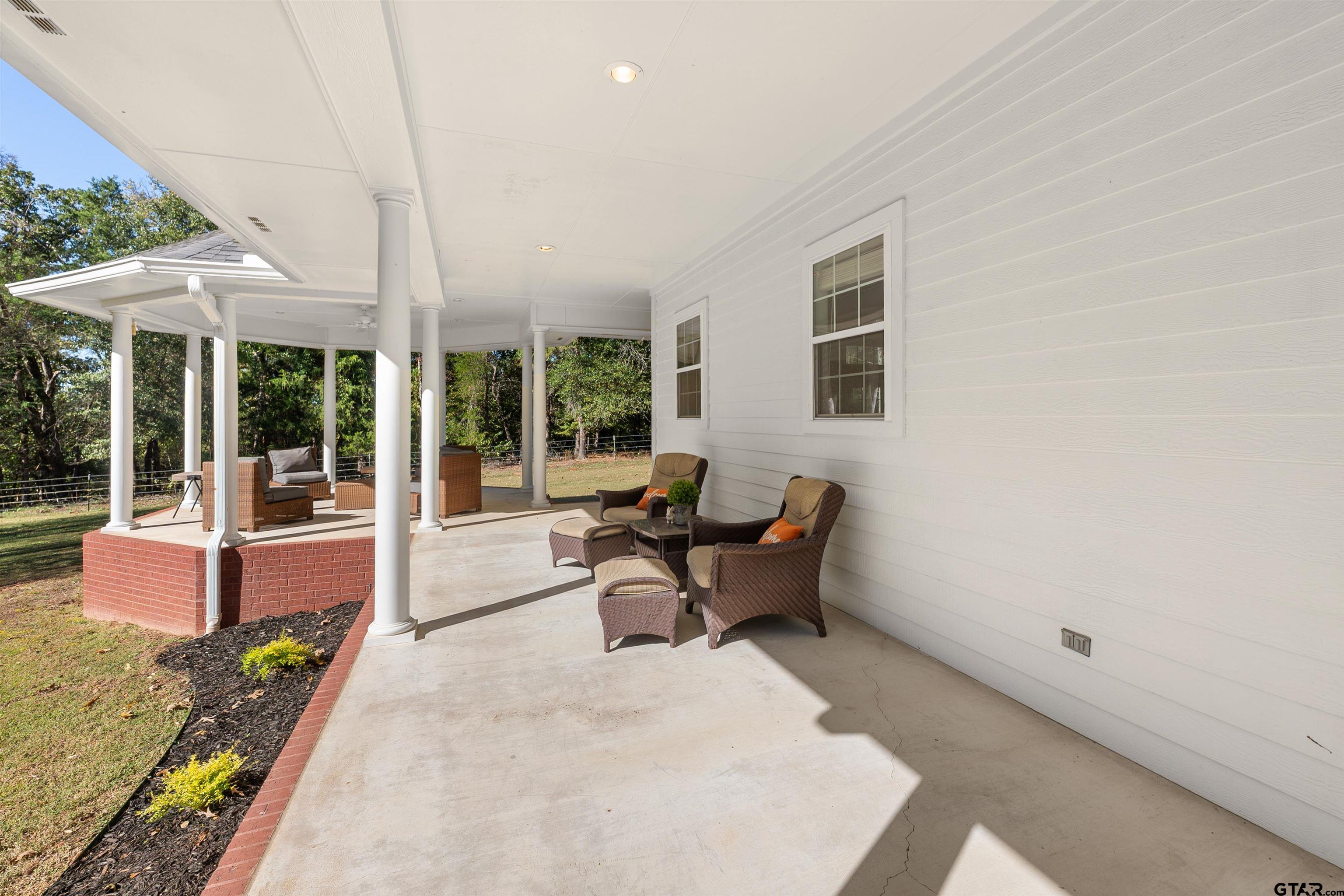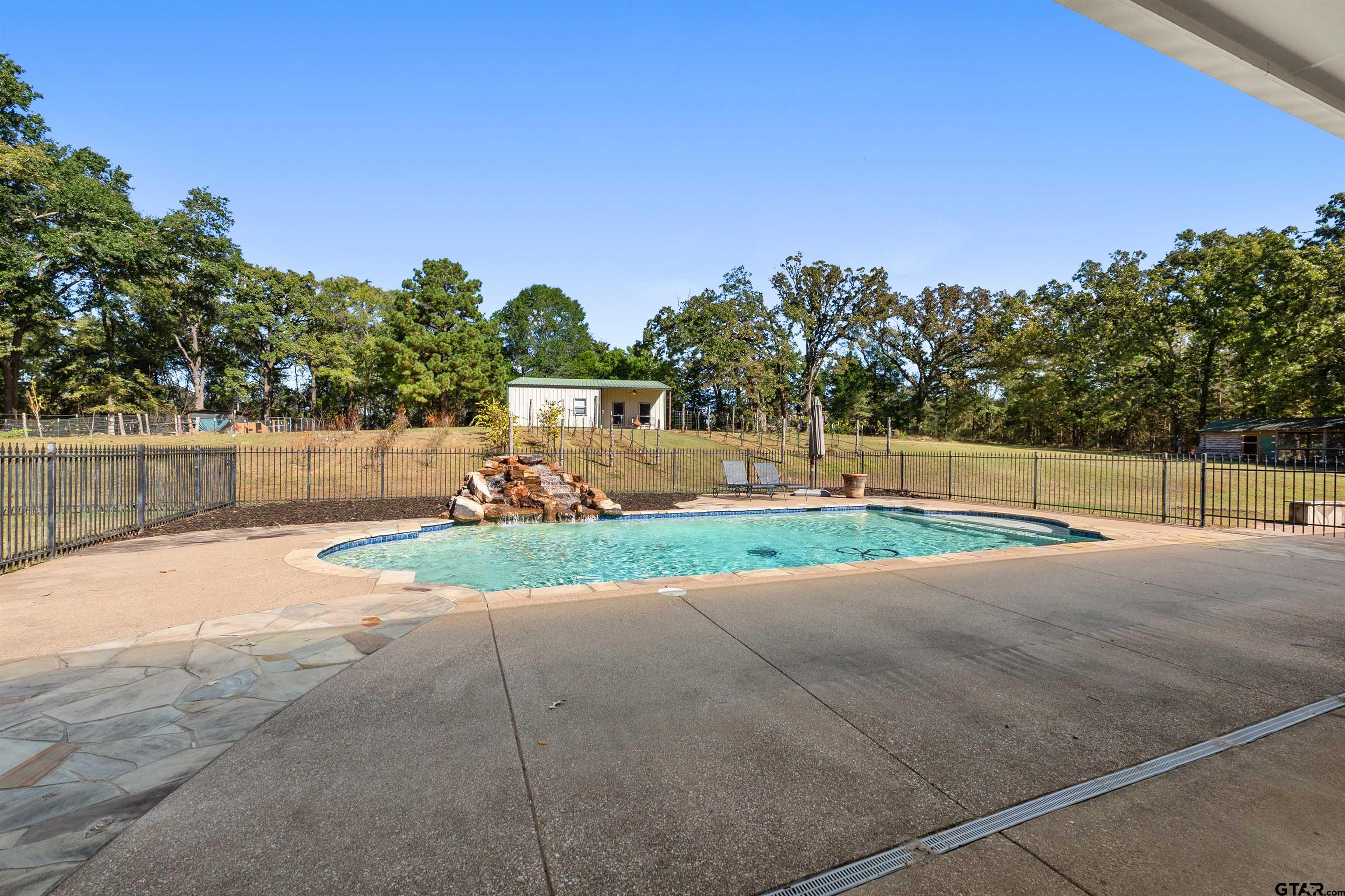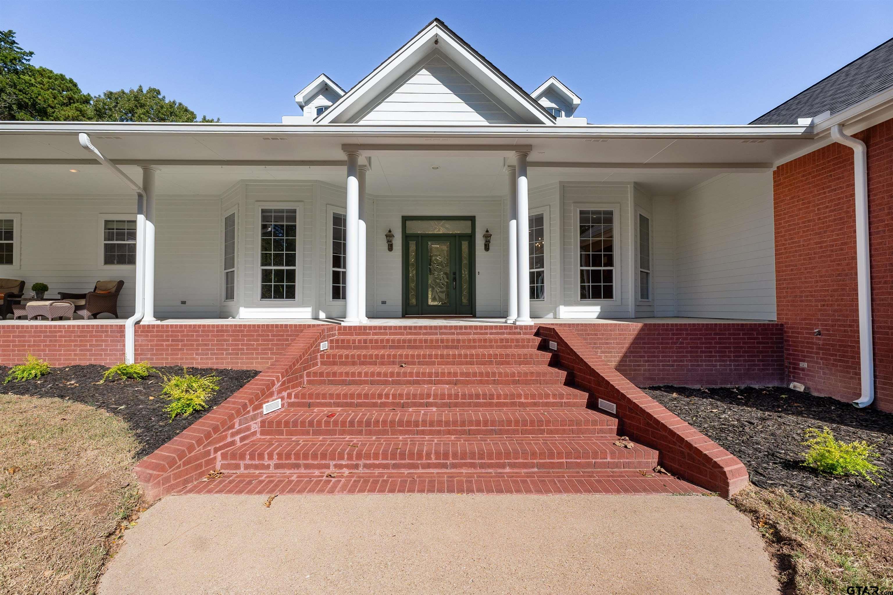 | Gated Home on 8 Private Acres - Traditional beauty in the serenity of country living, this stately and inviting house with guest house sits far back off the road and up on a hill, surrounded by partially wooded pasture with a pond and creek running through, and is fully fenced & cross-fenced! The dogs can run and play in the huge fenced side yard while family and friends splash in the pool and waterfall. Feel worlds away as you sit back on the huge covered porches overlooking the natural beauty of the tall pines. Further up the hill, enjoy a separate 1 bed/1 bath/kitchen/living guest house with HUGE game room attached! The 3996, one-story main home layout is thoughtfully planned with 3 bed, 21/2 bath, 2 living areas, split primary suite, and dedicated office featuring expansive floor-to-ceiling custom built-in library with its own separate entrance. The kitchen makes hosting a breeze with 2 islands, Monogram double wall oven, huge gas range, built-in ice machine, farmhouse sink and separate prep sink! Stock up with two large pantries for food storage, a chef's dream! HUGE laundry room with separate sink, folding counter and floor to ceiling custom cabinetry. Property has 2 gates, one is electric that opens to a long driveway and large circle drive for ample parking. **Main home Updates include: whole home generator, new roof 2022, bath remodels including onyx semi-precious counter, leathered granite and marble with high-end Brizo fixtures, Ralph Lauren chandeliers in living, while guest rooms, flooring in dedicated office, primary bedroom, guest rooms all updated, and attic space finished for 2nd office! **Guest house updates: appliances added, game room added, beautifully finished! Many more updates throughout this property and land! Located just minutes from the medical, shopping and dining of prestigious South Tyler! Call today to schedule your tour of this 8 acre, multi-generational estate! The freeedom of county living just outside city limits is priceless! | |
