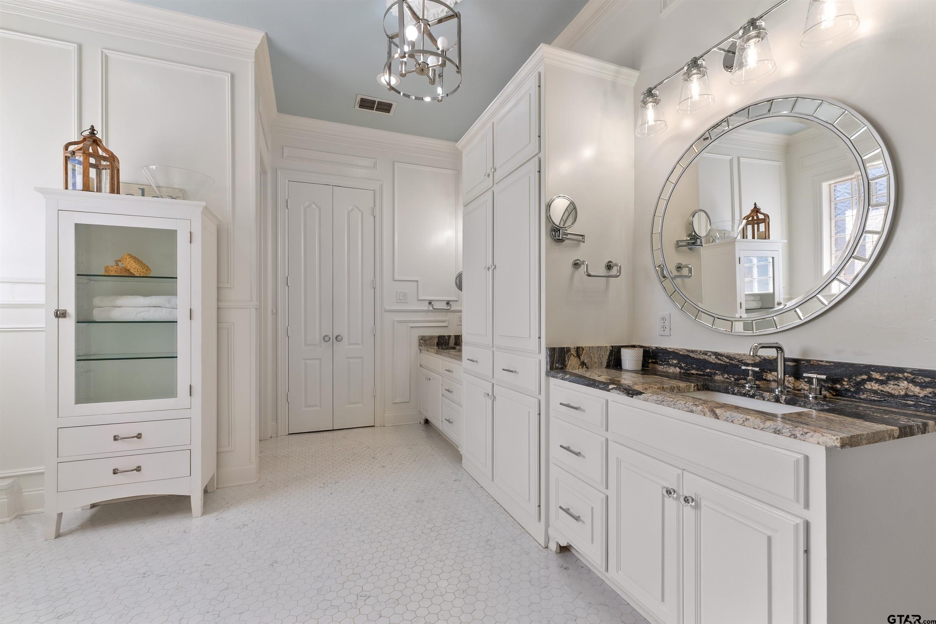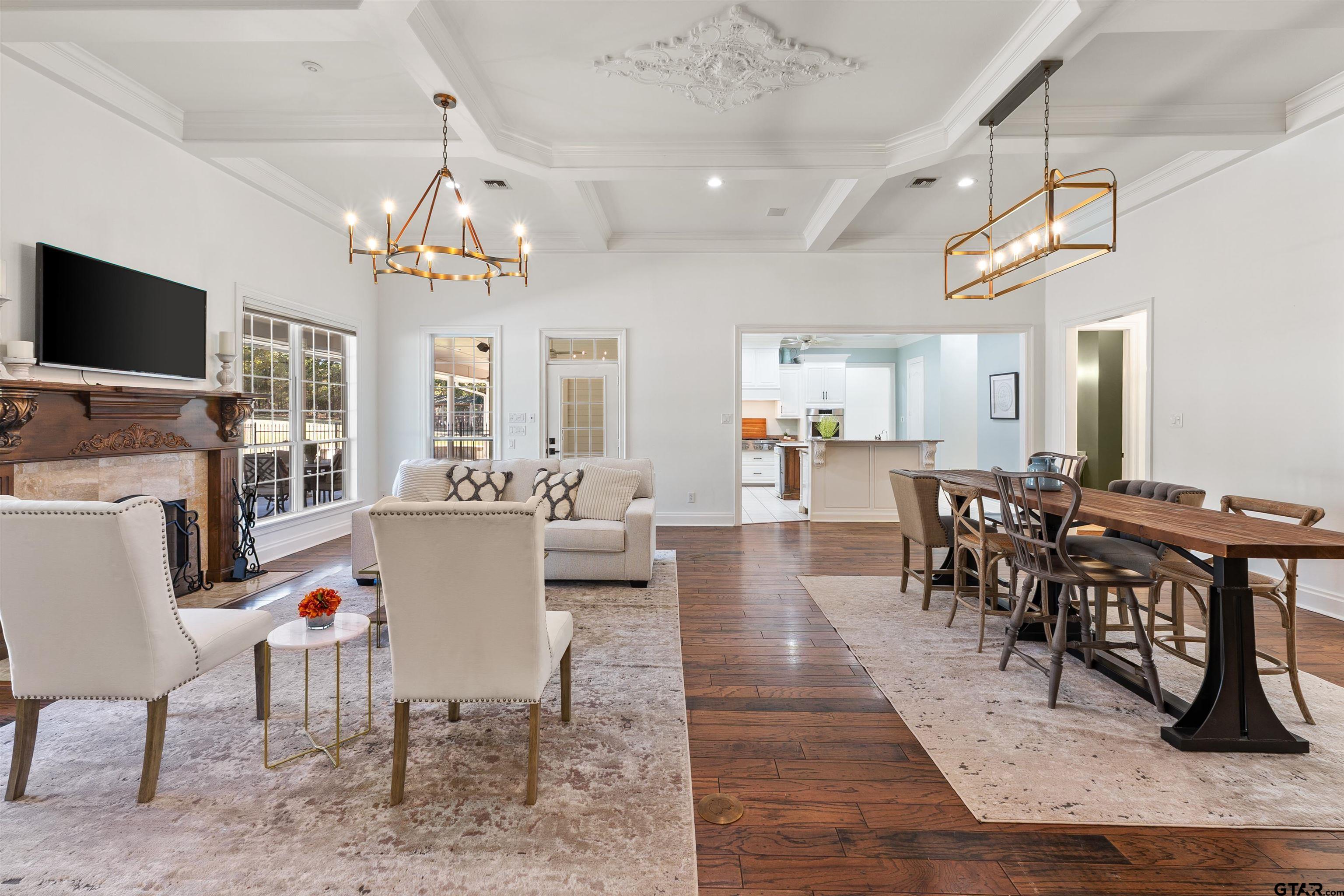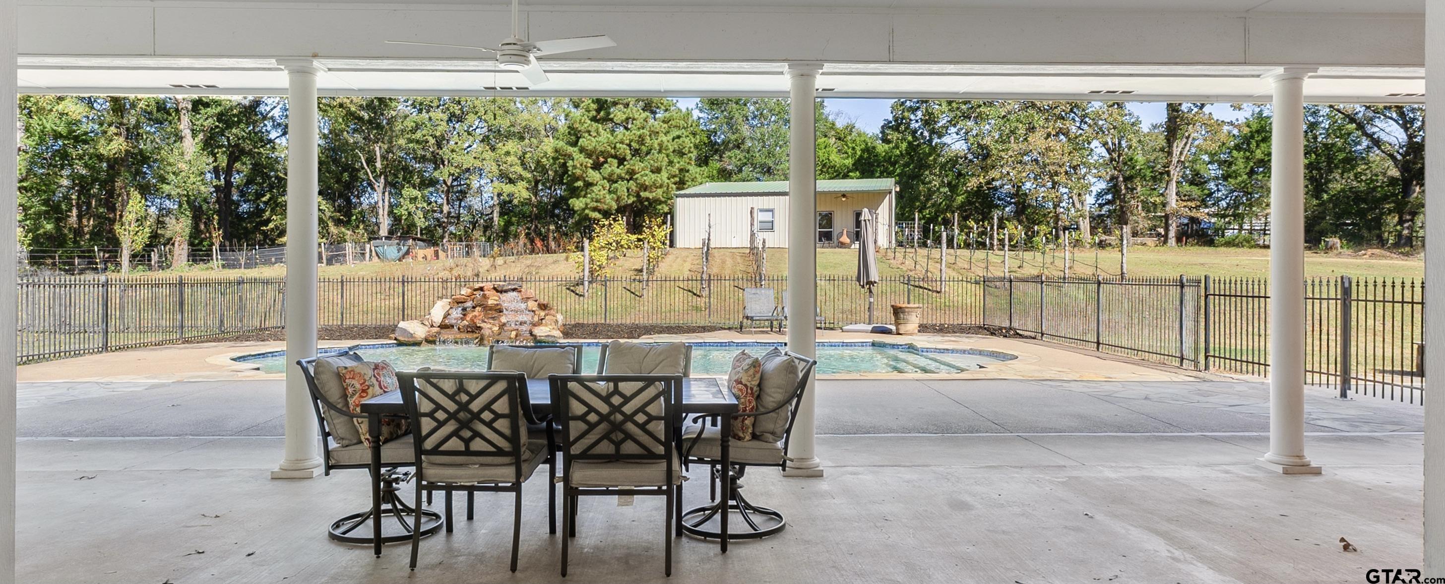 | Gated Home on 8 Private Acres - Traditional beauty in the serenity of country living, this stately and inviting house with guest house sits far back off the road and up on a hill, surrounded by partially wooded pasture with a pond and creek running through, and is fully fenced & cross-fenced! The dogs can run and play in the huge fenced side yard while family and friends splash in the pool and waterfall. Feel worlds away as you sit back on the huge covered porches overlooking the natural beauty of the tall pines. Further up the hill, enjoy a separate 1 bed/1 bath/kitchen/living guest house with HUGE game room attached! The 3996, one-story main home layout is thoughtfully planned with 3 bed, 21/2 bath, 2 living areas, split primary suite, and dedicated office featuring expansive floor-to-ceiling custom built-in library with its own separate entrance. The kitchen makes hosting a breeze with 2 islands, Monogram double wall oven, huge gas range, built-in ice machine, farmhouse sink and separate prep sink! Stock up with two large pantries for food storage, a chef's dream! HUGE laundry room with separate sink, folding counter and floor to ceiling custom cabinetry. Property has 2 gates, one is electric that opens to a long driveway and large circle drive for ample parking. **Main home Updates include: whole home generator, new roof 2022, bath remodels including onyx semi-precious counter, leathered granite and marble with high-end Brizo fixtures, Ralph Lauren chandeliers in living, while guest rooms, flooring in dedicated office, primary bedroom, guest rooms all updated, and attic space finished for 2nd office! **Guest house updates: appliances added, game room added, beautifully finished! Many more updates throughout this property and land! Located just minutes from the medical, shopping and dining of prestigious South Tyler! Call today to schedule your tour of this 8 acre, multi-generational estate! The freeedom of county living just outside city limits is priceless! | |
